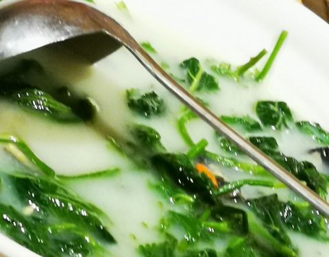 吵得很好吃惹 |花甲王^花甲很肥美,用芥末香菜辣椒香油凉拌,开胃,很好吃 |上汤浸桑叶^皮蛋上汤桑叶