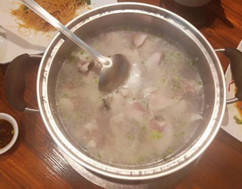 环境一般但客人非常多要订位天天爆满,这里以吃鲩鱼为主,10斤左右一条爽肉鲩五食,鱼肉清汤煮鲜美...
