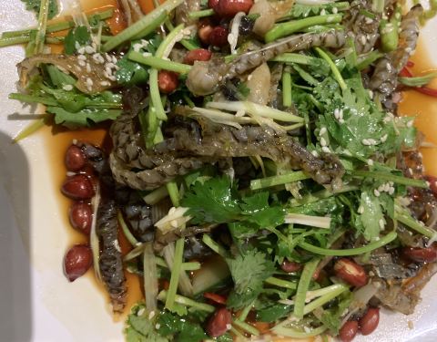 - 吵得很好吃惹 |花甲王^花甲很肥美,用芥末香菜辣椒香油凉拌,开胃,很好吃 |上汤浸桑叶^皮蛋上汤桑叶