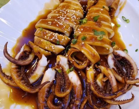 午饭时间就在附近的这家竹溪名宴吃饭,这家店很大,有六层,二楼,五,六楼是大厅!可以吃饭和喝茶!中午人还是比较多,这里的装修环境还算不错!坐下点了几个招牌菜,烧鹅是这里比点的,还有特价的白灼鲜鱿等,烧鹅的皮很脆,也很香,30多元一个例牌很超值,鲜鱿味道很鲜美,值得推荐!总体来说这家性价比比较高,大家有机会可以去试试!
