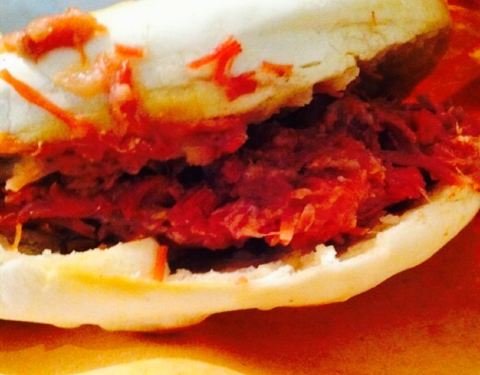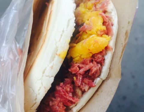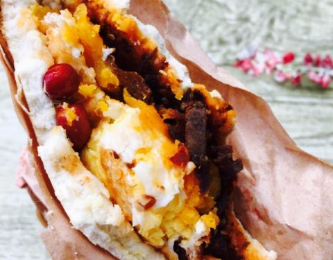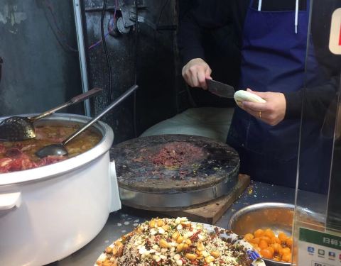 为了一口特色肉夹馍跑到了洒金桥,听说洒金桥是老西安人爱去吃的地方,到后发现原来是一条小吃街,夹杂着市场。比较老旧,但是找到了上过电视非常有名的蛋黄肉夹馍摊。老板是个帅欧巴,就是有点凶,但是做的馍是真好吃,连续去买了三次,鸡蛋夹里面香香的,还有果仁和咸菜,最喜欢抹的辣子酱,特别香,还不辣,吃了还想吃!