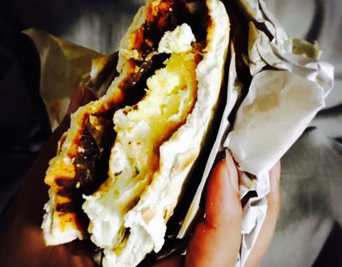 就在洒金桥北口,马二酸汤饺子对面,要了一个蛋菜夹馍,味道比较足,觉得比营销做的很好的金家要好吃,夹得很饱满,吃完会比较干,只是还是很推荐的。这个夹馍真是觉得做的人越来越多了,遍地开花,实际上味道差别不大。