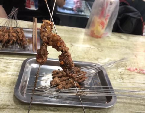 这个点也只适合发这个了,来西安还是喝酒了,晕了后半夜发吃,羊肉胜在新鲜,口感在于火候,味道简单至极,盐、孜然和辣椒。回民街民间美食之一,我觉得都不错。