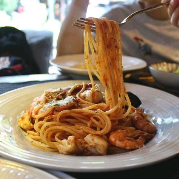 海鲜意面:这个意面就非常好吃,没有海鲜面的腥味,口感不腻,还有甜酸的番茄味在里面,很好吃~推荐