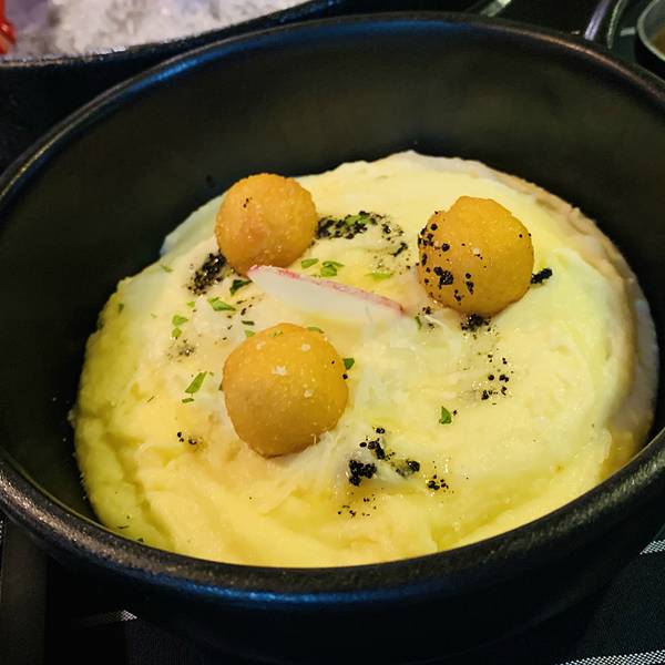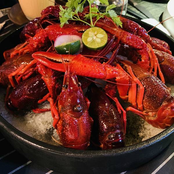 老公过生日特意选了这家网红餐厅。 首先,服务和环境都超级棒,很安静,空间很大,适合聊聊天,沙发很舒服,灯光略微昏暗。 其次,菜品基本都是按照网上推荐来选的,葡萄酒烩牛尾真的超级棒,牛肉酥软,汤汁可口。 柠檬烤鱼钩,有些失望,鱼肚子里会有一点点腥臭味,不知道是鱼不新鲜还是没有处理好,还是个调料引起的,总之一般。上菜很慢,前面都吃完了等了好久这个才上。 松露烩饭,服务员推荐的,味道并没有很惊喜,价格小贵。 牛油果鲜虾沙拉,无功无过吧。 还有一个油鸡枞时蔬,真的挺一般哦。 另外,吃完不到两个小时本人拉肚子了,然后可能因为每道菜里都会有一点菌类,老公不知道是哪种菌类过敏,双手有点肿,发痒,建议大家点菜时多注意下。