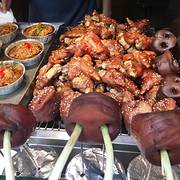 这里晚上“人多热闹”,各种各样的好吃东西“琳琅满目”,看得你“垂涎三尺”,尤其是成都老妈兔头,一直被好吃嘴们所津津乐道。老妈兔头是一道四川省特色传统名吃,属于川菜系。起源于四川省成都市双流区,是当地的招牌美食。以前只是听说,没想到这世上还真有猪鼻子插葱,总算是长见识了。
