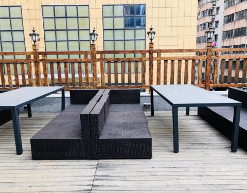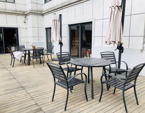 - 外面居然还有那么大一个露台,摆放着桌子和椅子,太适合很多朋友一起在这里聚餐了,然后还能在露台聊...