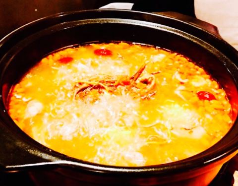 不得不说的幸运,这家店必须提前预订,不然很难吃到。清明好友小聚,在攻略上看到一家店的环境不错,就慕名而来了。这家店只有一份备货,被我们无情的占用了✌✌✌。五张桌子,一种锅底,不预订就吃不到,就是这么牛。每个锅底的汤料都是特别足的,有很多中草药,而且牛腩的量也十分多,十分烂,不愧是炖了三个小时的精品。有客人来时,如果汤没到时间就会告诉客人,火候不够,需要等候,一点都不欺骗消费者。汤纯,清,鲜。另外就是说的希有炖,哇,超级赞,我们要了一个里面有燕窝的,必须说里面的燕窝还是挺多的,每口都有拉丝,胶质超级棒。