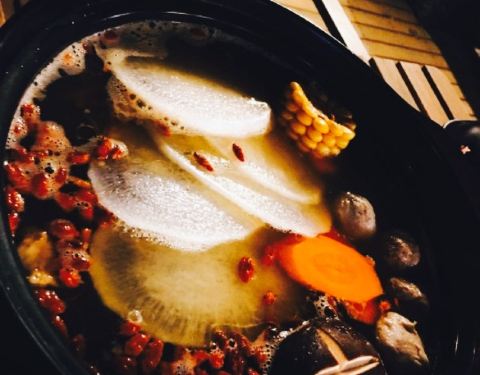 口味相当赞 。浓浓的汤 。很滋补 。料也很足 。要了一个菌汤 。一个猪肚鸡 。菌汤有些甜 。开始吃会觉得有点诡异 。只是里边的料真足 。五个人两锅差点儿吃不完。需要提前预约才可以 。因为所有的锅都是现熬两个多小时才能吃 。服务很好很贴心 。位置很偏 。定位准 。只有四个桌子 。所以肯定要提早订。
