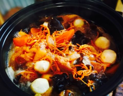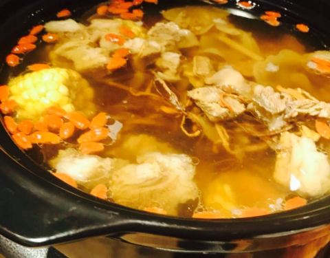 口味相当赞 。浓浓的汤 。很滋补 。料也很足 。要了一个菌汤 。一个猪肚鸡 。菌汤有些甜 。开始吃会觉得有点诡异 。只是里边的料真足 。五个人两锅差点儿吃不完。需要提前预...