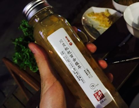 没来暖气前的北京,冷得让人没有食欲,唯有火锅可以解决。在朋友的推荐下,首次尝试了潮汕药膳火锅。这家店子位置还是蛮好找的,出了7号线地铁大郊亭站B口,一直往北走,第3个路口左拐一点点,看到路边摆着酒瓶阵(。)的地方就到了。其实店子的地方并不大,但是布置的很有情调,第一进是庭院式的的摆设,第二进是小型阳光房,可以喝喝茶,第三进就是正式的食堂了。屋里摆设很别致,可见老板是个很爱生活的人。今日和朋友一同吃的是五指毛桃药膳牛肉锅,很大一份,2-3个女生吃一锅不错,里面有炖的很烂,很美味的牛肉,还可以自己涮潮汕运来的牛丸,鱼丸。本人喜欢牛丸,很有嚼劲,感觉冬天就要吃点牛肉才温暖。这个药膳火锅里有很多药材,五指毛桃,海底椰,枸杞,沙参等,可以活血化瘀,清肺养胃,滋补养气,蛮适合工作压力很大的白领人群。除了这个药膳火锅外,最让我喜爱的是店里的糖水。瓶子包装的很有质感也方便携带,并且还能养颜,饱腹,我想没有女生不会喜欢。就是种类少了点,希望可以再多些口味。