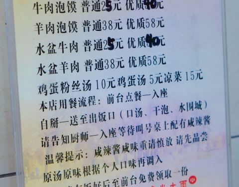 这次去距离上次去有一段时间了,感觉服务比以前要好了。 另外,这次给的肉很实在哦,呵呵,厚厚的两大片牛肉,烂烂的,好吃。 原本以为只有冬天泡馍才受欢迎,看来是四季都受欢迎啊,至少这家是啊。 一大早大约八点多就到了,就是为了不排队,也果然没有排队,只是没想到还是有不少人哦,所不同的就是大部分都是坊上人,这大约也是早餐吧。 只是上次来是15元,现在已经涨到20元了,生意好啊! ----------------------------------------------------------------------------------------- 1,口味, 馍比以前小了很多啊, 肉也比以前少了很多啊, 而且没有香菜, 没有预期的那么好, 唯一可以称道的是确实是肉汤, 但是汤太少了,还有点咸. 2,服务, 服务恶劣,态度差。 3,环境, 卫生较差,没有空调.桌孑上都是油.夏天去吃就是受罪.