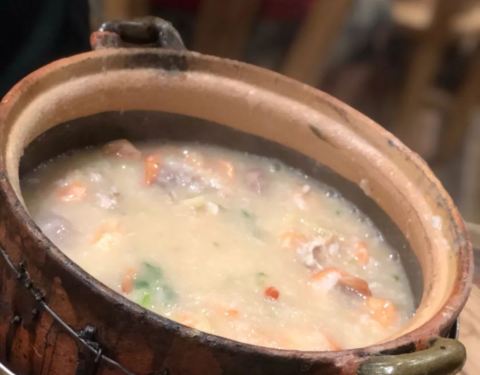 粥很软糯很浓 不是清汤寡水的那种非常鲜 配上芹菜 一点海鲜的腥味也没有很推荐也有烧烤炒菜什么的可以搭配两个人252扶墙出