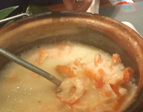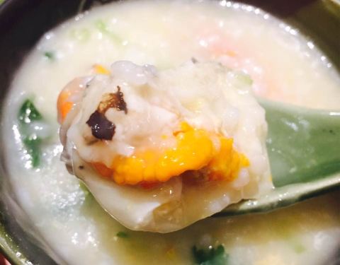 椒盐鱿鱼须挺好吃的,调味调出了干脆面的味道,觉得还挺香的。虾蟹粥非常不错,味道比较重, 比较鲜