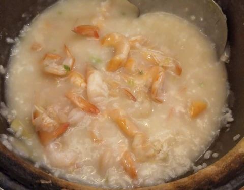 - 炒花甲也弄得挺好吃。砂锅粥好吃,粥里的食材很丰富,原汁原味,里面有鸽子、虾、沙白,加点姜丝和香菜
