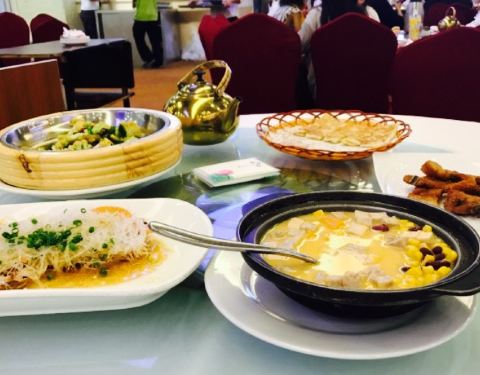 - 都是一些比较常见的早茶,味道很好,口味稍重一些,叉烧包和叉烧肠味道还不错,皮蛋瘦肉粥很清淡