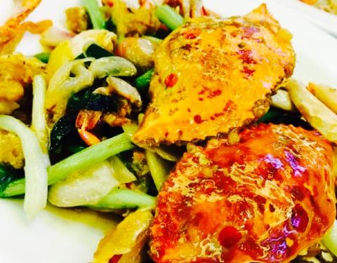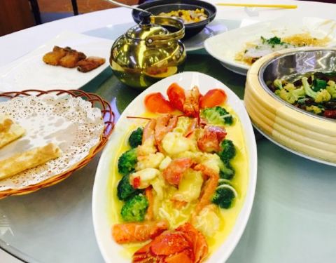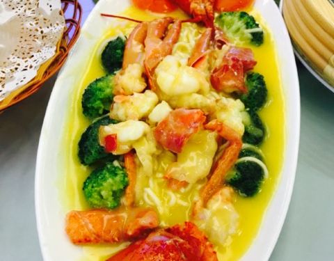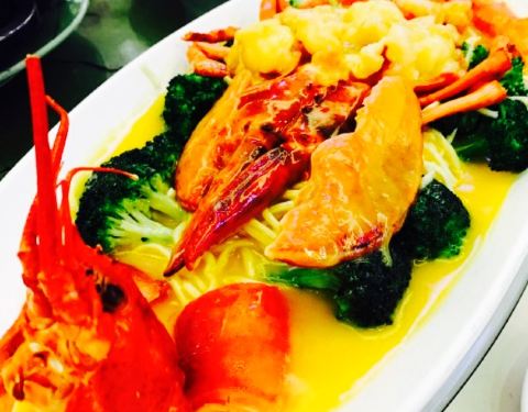 离朋友家不远,强烈推荐说海鲜便宜又新鲜了,开过来沿途发现在大运会场馆附近。周围餐厅并不多,到的比较早但是门前已经停了好多车,估计赶上过节门口一楼二楼都是人,热热闹闹的要命。海鲜在楼下点,种类不少还很清新。服务很好本来想点半斤花螺,但是提醒我们不是非常新鲜于是放弃。波士顿龙虾138一斤,因为过节所以多了十块钱但还是很公道。香辣炒的很鲜美。蛏子个大香甜基本上都是让我吃了。隔壁桌点的超大一份的鲍汁鹅掌看着相当不错,可惜已经没有肚子。留到下次有机会在拔草吧。怪不得朋友这些年一直减肥不成功,广深好吃的东西真的太多了。还有有一个蔬菜面片汤非常入味,超大一份面片软糯。放了青菜鸡腿肉和蘑菇,汤非常爽口。喝了两碗。