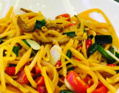 - 小炒里的豆角炒肉,味道还不错,很下酒,可是,非常辣椒,巨辣,不能吃辣的人慎点。总体觉得还不错