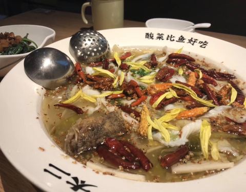 每次想起酸菜鱼,我都第一时间想起去太二,鱼汤香浓美味,鱼肉嫩滑骨头更是几乎没有的。说明这家店的老板挺高要求的!送的小吃也很好吃呢。
