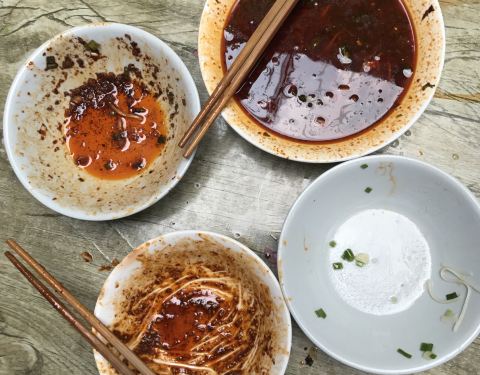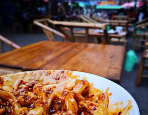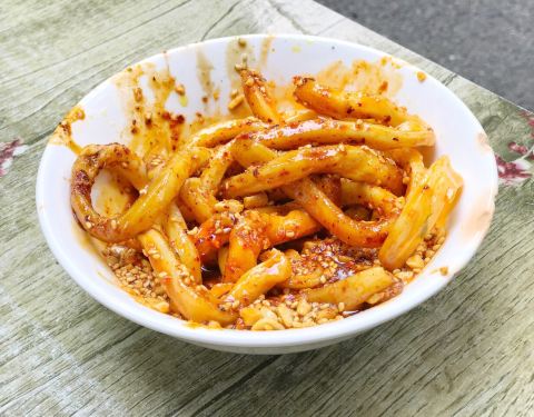 四星给的甜水面 师兄说了很久的幺鸡面,这盘终于来吃了。十一街还是以前的样子,记得很多年前跟到川音的老师来十一街吃苍蝇馆子食堂的时候还没有那么热闹也没有那么多店,影响最深刻的就是麻将馆和食堂。大爷大妈们打麻将打累了就到隔壁来吃午饭,然后会有几个大爷来喝茶,几棵树,一把椅子,悠闲的氛围很喜欢。 因为这样的氛围也吸引了游客,然后店面就越来越多,幺鸡面也是后来加入的商家。 甜水面比一般吃到的要微辣一些,还是好吃,酱给的很足还有画的好那个粒很喜欢呀。