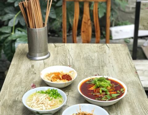 总评: 味道比我想象中要好点,有明显的优点,也有明显的不足。 如果喜欢吃面食,而有不太远,那么可以来试试看。 甜水面的花生碎,脆绍面的脆肉臊,鸡汤面的淡雅汤头;鸡杂面的大份量。 都是值得肯定的优点。 缺点,正文详细来说说吧。 当我做好吃面的准备,我会一个人干掉一桌子的面,吃满足为止。 评分:82分 性价比:❤❤❤ 也是说了好久好久的一家面馆,殊不知我的收藏夹里,最多的就是饺子和面馆,散落在成都的各个街头小巷。 【甜水面】10元 感恩,成都能有这么创意的一碗面条,和麻辣的四川人简直不是一个风格的面条。 而我,这么一个无辣不欢的妹纸,就真的是特别爱吃甜水面,每次都是连面带酱的舔干净! 幺鸡家的甜水面做得还行吧,棒子面没什么特色,但是酱料有自己的主见。 首先酱汁很足,也很浓,只是稍微稀了一丁点,如果可以再稠那么一点点,我觉得更易挂汁,那样吃起来没那么费劲儿,因为我真的很舍不得浪漫任何一滴的酱料。 最爱的是手工打磨的酥脆花生碎,花生碎很多,混着甜酱还有辣椒油,别提有多香了! 辣椒油不辣,但是恰好综合了酱料的甜,还格外的增加了另外一种香味。 最后,我用鸡汤面的细面,裹着吃完了碗底的面酱,真的浓到爆炸! 【脆绍面】8元 当我吃到第一口的时候,我被那一颗颗脆脆香香的肉臊子惊艳了,为什么会这样,为什么会有如此的口感,真的感动哭了。 好久没吃到真正的脆口脆绍面了,简直是太良心的地道出品了。 调料里面应该是有 加猪油吧?再加上本身碗底的油有点多了,所以越吃会越觉得闷。 吃到后面,也是靠不浪费的意志力,坚持吃完的。 面条比较细,很容易入味,拌面的重口味让人一看就嘴馋,中间的耙青豆点缀得不错。 【手工炖鸡面】12元 一碗炖鸡面在这些重口味的面条里,显得格外的小清新,而且有莲花的气质。 鸡汤很清,一点点的油星星飘着,虽然确实不浓,但是比起那些各种添加和勾兑出来的假鸡汤,我觉得清点更真实。 面条是选的很细很滑溜的挂面,应该是特意选了吧,口感很顺滑,还不错。 手撕鸡肉比我想象中要嫩点,不似一般的鸡胸肉那么柴。 【豪华泡椒鸡杂面】11元一两 我的天啊,一两这么大一碗,老板也还是多大方的,并且臊子也多足的。 面是重口味,有点火锅面的味道,红油很重口,面也比较入味。