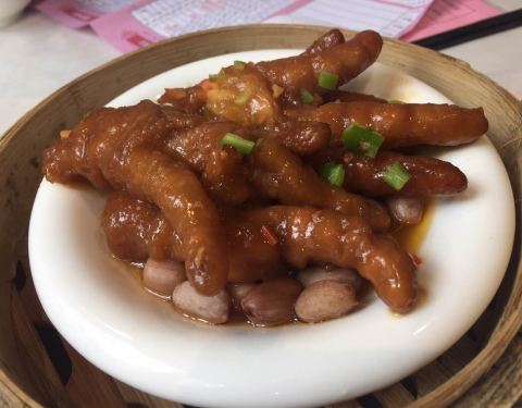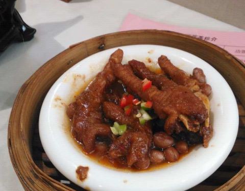 广州的早茶很好吃哦!这个凤爪软糯香,,还有虾皇饺,艇仔粥,菠萝包,配寿司的芥末,真是太有料了