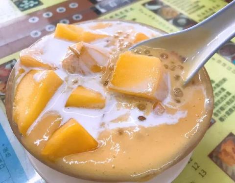 ...苓膏的朋友可以试一下这碗芒果鲜奶西米露,也是料多到要溢出来,一份却只要12元,可以说是超级实惠