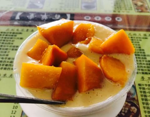 看门面像是传统老字号凉茶铺,实际是一家糖水铺,四五个座位显得有些拥挤,每次来都会看到长长的队伍,芒果鲜奶西米露,芒果小块铺满在西米露上,软软甜甜很好吃。