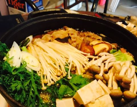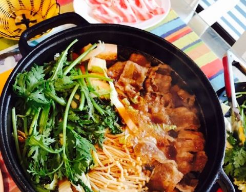 在扎推上看到的推介,朋友圈挺火的一家小店。店面不大,挺小的,位置不太醒目,要认真仔细看。店里就两个人。两人点了一份小份的寿喜锅。肥牛是老板娘亲自煎熟的,另外,鸡蛋是收费的,沾着肥牛吃,口感蛮滑嫩。不过,说实话他们家的消费不便宜,花了两百多元吃了一大堆青菜,肥牛就那几片。吃到后面感觉汤汁很甜,有些腻。