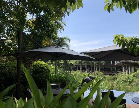 君悦酒店的环境非常好。周边景色优美,泳池旁,有家庭套餐活动、也有单点的菜式,中规中矩。高档大气