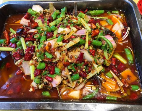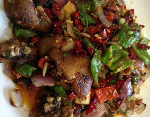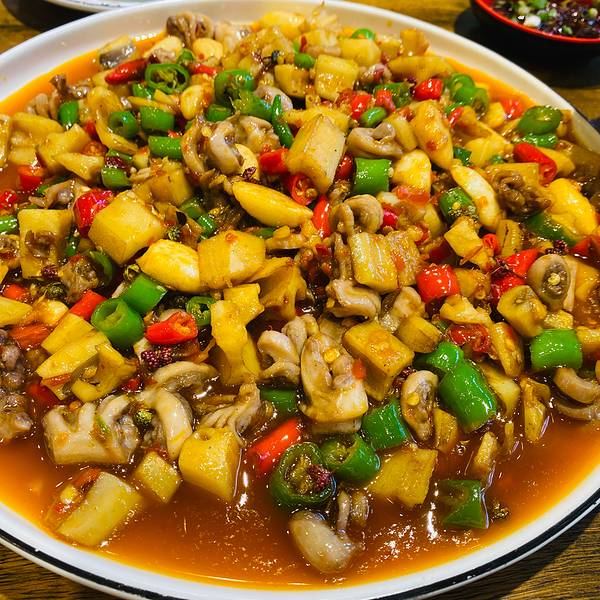 有一个爆炒脆肠,是莲藕炒的小肠,味道很赞,典型川味下饭菜,泡椒和辣椒都很对位,这一份也是一点没剩。