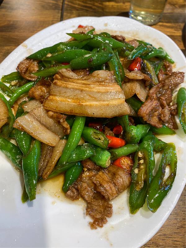 有一个农家小炒肉,也是二荆条炒的五花肉,非常下饭。