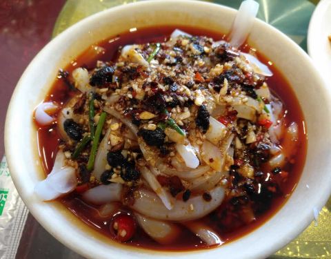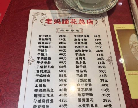 份量还可以 价格没比较就不晓得了 门面直接就老妈蹄花没有明显加郭氏 进入才发现的 算不算欺骗顾客 ? 环境比较窄 肺片都是皮没啥肉