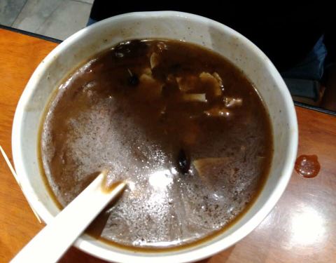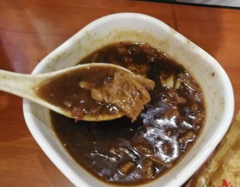 胡辣汤有些淡,不过料很足,豆皮烧饼裹了酱很好吃,放久了有些硬,刚出锅应该更好。