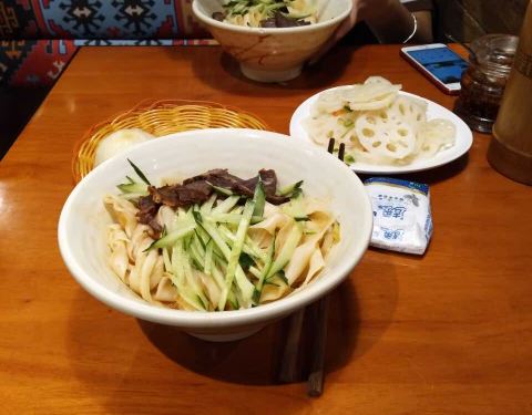 拌豆芽挺好吃有机会可以去吃!凉拌会面味道很好;会展中心地铁地下商城里,平时人挺多