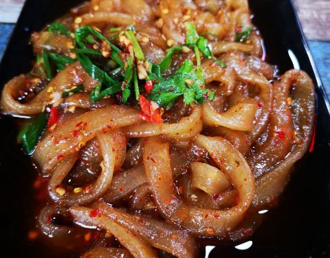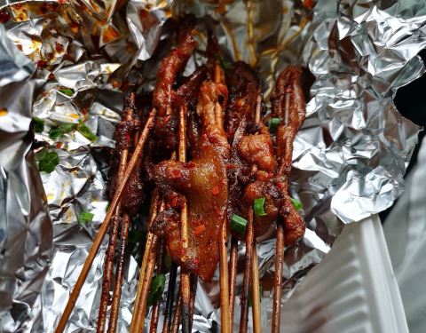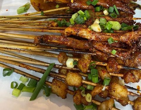 店铺就在第五大道罗莎蛋糕旁边的那条小巷子进去,以前也来吃过他家的烤五花,打包带走的,还挺香的。这次坐下来多点了几个品种,基本上招牌还是都不会出错,半壮牛肉、烤五花、烤鸡皮都可以。宽粉条很大一份,而且非常入味,我喜欢。烤鱼也很不错,没有小鱼刺,鱼皮烤酥脆了很好吃。