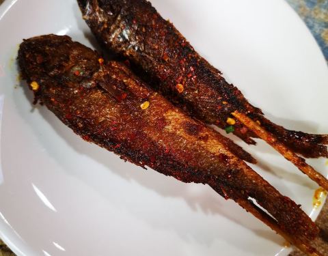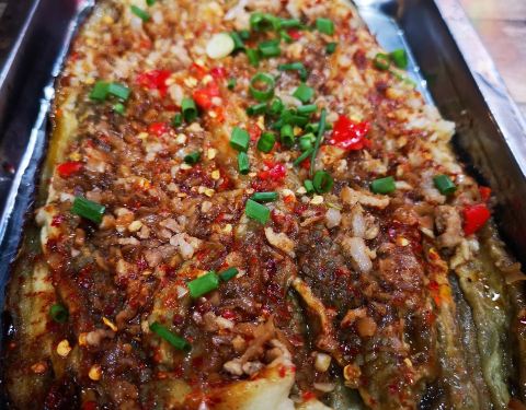 宽粉条很大一份,而且非常入味,我喜欢。烤鱼也很不错,没有小鱼刺,鱼皮烤酥脆了很好吃