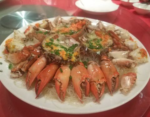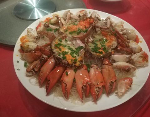 还是岛外的划算…公司博饼聚餐,选择了大嶝的金门湾大酒店,虽然是远了点,但是其实出了翔安隧道也还好,酒店就在战地观光园旁边,有点度假酒店的风格,有很漂亮的游泳池!上的菜非常不错,膏蟹蒸粉丝尤其大赞,膏蟹及其饱满,而且每道菜的分量都很实在,划算!土猪肉汤也熬得很好喝,最后都吃不下了…服务也挺好的…下次再来!