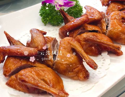 云淡风轻近午天,傍花随柳过前川。古人曾于春日写下这首诗,表达了一种超脱物外,怡然自得,安逸闲适的生活,云淡风亦轻。 在蔡塘广场附近,也藏着那么一家店,店名即是云淡风轻,店如其名,敞亮舒适。刚入座就有服务人员冲泡黑枸杞水儿,颜色十分契合当下的意境,由浅蓝渐变为深蓝转而变紫,细腻的线条儿令人浮想联翩。 烤乳鸽。据说是店里备受欢迎的一道菜,于是迫不及待,想要品尝一下美味,鸽子肉皮儿脆,肉质鲜嫩,果然严选周期在22-28天的鸽子当作食材,有其意义蕴含其中,品质有保证! 陈皮骨。说实话之前并没有尝试过这道菜,意识中也没有办法想像它的味道,然而在品尝过后深深爱上。陈皮骨烹制口感恰到好处,陈皮味道不至于太过,也不至于寡淡无味,单有其名。吃完一块会有还想来一块儿的感觉,意犹未尽。薯条铺底,也为这道菜增色不少! 大文蛤红菇汤。汤如其名,颜色似梦似幻,大文蛤的参与使得汤头更加鲜甜可口,红菇个头硕大饱满,无尘土杂质,品质上乘,营养好喝,味道赞极了! 咖喱鸡柳。超级好下饭儿!咖喱味道浓郁,鸡柳细嫩,浓稠的咖喱跟鸡柳搅拌放在饭里,满口浓郁的咖喱香气,舌尖带着你领略异国的风情。 辣呛龙胆。深海龙胆对半切开,做到辣呛的雨露均沾,皮质富有弹性,鱼肉细腻柔软,与众不同的烹调方式,令这道菜脱颖而出,处理除去了鱼腥味,保留下了最原始自然的风味,实属难得!