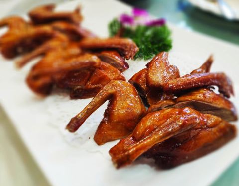 不是公司商务餐真的很难发现这么好吃的一家店。 脆皮乳鸽是最深得我心的一道菜,一只分成五大块,不油腻又清新,一个人吃半只没问题。 凉菜旺螺也是非常入味,吃完了洗手后还能闻到淡淡的香气。 一品锅应该是招牌...
