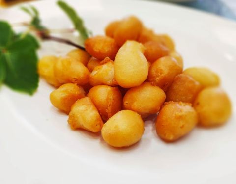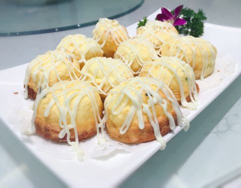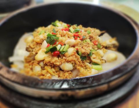 位于蔡塘广场后侧的云淡风轻,交通便利,能很快找到停车位,拥有各式各样的包厢,还有别致的户外进餐地,菠萝油条虾是一道很具特色的菜品,将常人意想不到的菠萝、油条、虾结合在一起,采用虾青素较高的斑节虾,辅以菠萝、油条,油条吸收了虾的腥味,菠萝吸收了油条的油腻,斑节虾使菠萝恰到好处的不酸不甜,三者搭配,结合了虾的鲜,菠萝的酸甜,油条的酥脆,口感酥滑顺口,即好吃又有趣。
