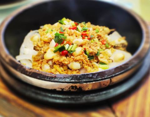 不是公司商务餐真的很难发现这么好吃的一家店。 脆皮乳鸽是最深得我心的一道菜,一只分成五大块,不油腻又清新,一个人吃半只没问题。 凉菜旺螺也是非常入味,吃完了洗手后还能闻到淡淡的香气。 一品锅应该是招牌菜,能感觉到厨师的用心,三下五除二就能吃完一碗,菜转了一圈过来,就是底了,看来众口一致啊。 咖喱鸡肉对于不吃辣的可以试下,非常浓郁,然后你就会就看到疯狂配米饭模式开启了。