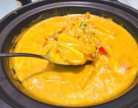 萝卜牛腩,摆盘精美,荤素搭配,口感很好。咖喱蟹,咖喱味道浓郁,来上一碗米饭,感受咖喱的柔滑