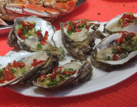 这家店生意很好啊 都来不及,看上去很好吃的啊 位置都安排不上了,还要等一会,真是香啊 闻着更饿了,蒜蓉的生蚝味道不错
