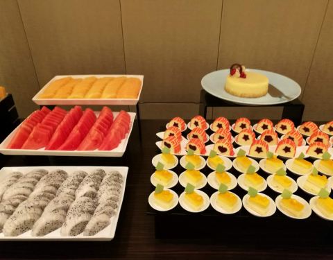 第二次入住明捷万丽酒店了 早餐是在一楼的自助餐厅享用的 餐厅面积很大 装潢也很有格调比较符合星级酒店的气派 早餐品种相当丰富 中西式都有 现场烹饪的也有 不过万豪集团酒店早餐都差不多 服务不错主动询问 清理桌面 户外有小花园 如果天气还可以在外面用早餐 最喜欢水果丹麦