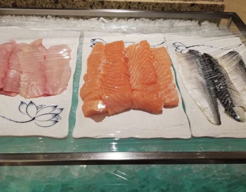 - 这里的自助餐自带的火锅和三文鱼味道倒还是不错的,服务员也很耐心:
