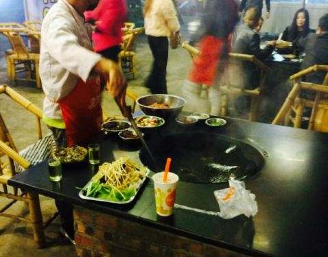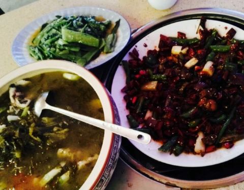 老板娘很热心,味道很合胃口,分量很足。还送芹菜炒的鸡杂,一大盆白菜鸡血汤,太霸道了。很适合团队聚餐。最重点的是,尽管在坝坝头,但有炭火和取暖器,相当的暖和。