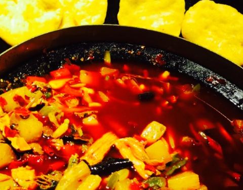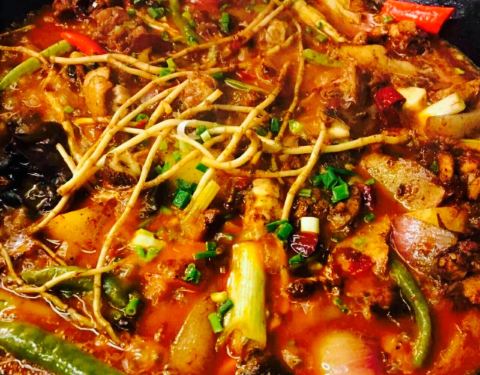 朋友和我吃了都感觉味道很好,两个人吃了一大锅,本以为结束了,结果店家又端来了鸡血汤和炒鸡杂,鸡...