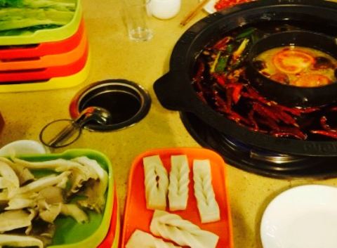 环境确实大,大,大,确实是十分的大,在市中心这么大真的好吗。可以选择的总类很多,分了很多区,有火锅区,烤羊区,柴火鸡,火盆烧烤,只有两个人,因此选择了自助火锅,菜品特别多,锅底挺辣得,最最最爱的是多种多样的粥啊,甜美,还有各种资料免费提供,有一点儿不好的就是放得歌曲,真的是太高亢了,比如最炫民族风,还有就是火锅区有点儿冷啊。