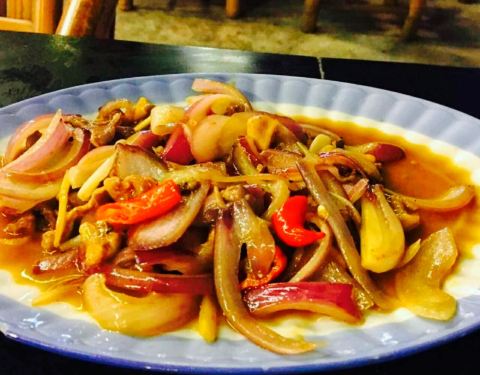 点了干锅肥肠排骨 。味道十分不错,特别是肥肠,外边是脆的,一口咬下去瞬间爆出的油简直不要太香了。排骨也是干香干香的,配菜很爽口,特别是洋芋,耙硬刚刚好。藤椒鱼是个好东西,去了肯定要点,麻辣带感,鱼超级嫩,入口即化,嫩到筷子夹不起来。喜欢吃鱼的朋友一定要点哦。环境不错,不过不太适合两三个人来,适合人多热闹的聚餐。重点是冬天了有点小冷,实际上吃起来感觉不到,但夏天肯定更爽点,院坝很大,老板娘人很好,在这边吃饭下午打牌喝茶,包括停车都不要钱。就在二环边边上,优越的地理位置,附近就是加气站,便捷。